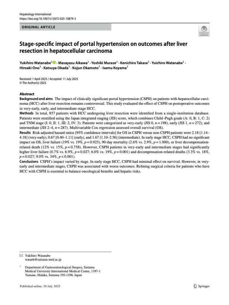 #Hepatology#LiverSurgery#HCC#PortalHypertension#LiverResection#HepatologyInternational#LiverCancer#ClinicalResearch#Oncology#Hepatobiliary