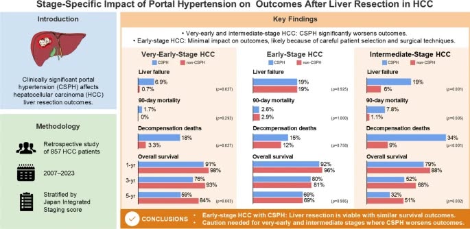 Understanding the stage-specific impact of portal hypertension is crucial in optimizing surgical outcomes for hepatocellular carcinoma (HCC).