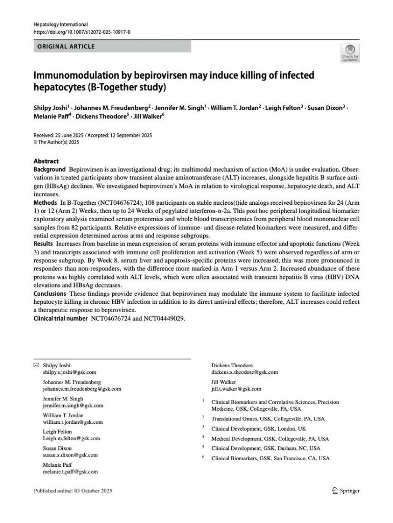 #HepatitisB#HBVResearch#Immunotherapy#Hepatology#LiverDisease#Bepirovirsen#HepatologyInternational#ViralHepatitis#ClinicalResearch#HealthcareProfessionals