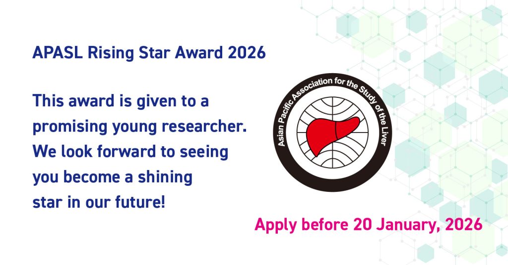 It is a great pleasure to announce you that APASL will call for application of the APASL Named Award and Rising Star Award which will be included in the scientific program of the next APASL Annual Meeting. Following is the information regarding the application for the Awards. We are looking forward your application.