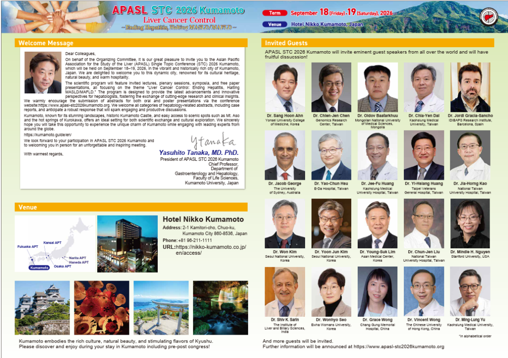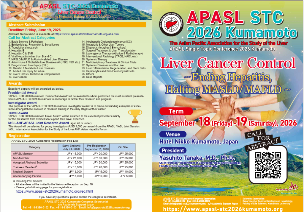 Pre-Registration and Abstract Submission for APASL STC 2026 Kumamoto have just started !!