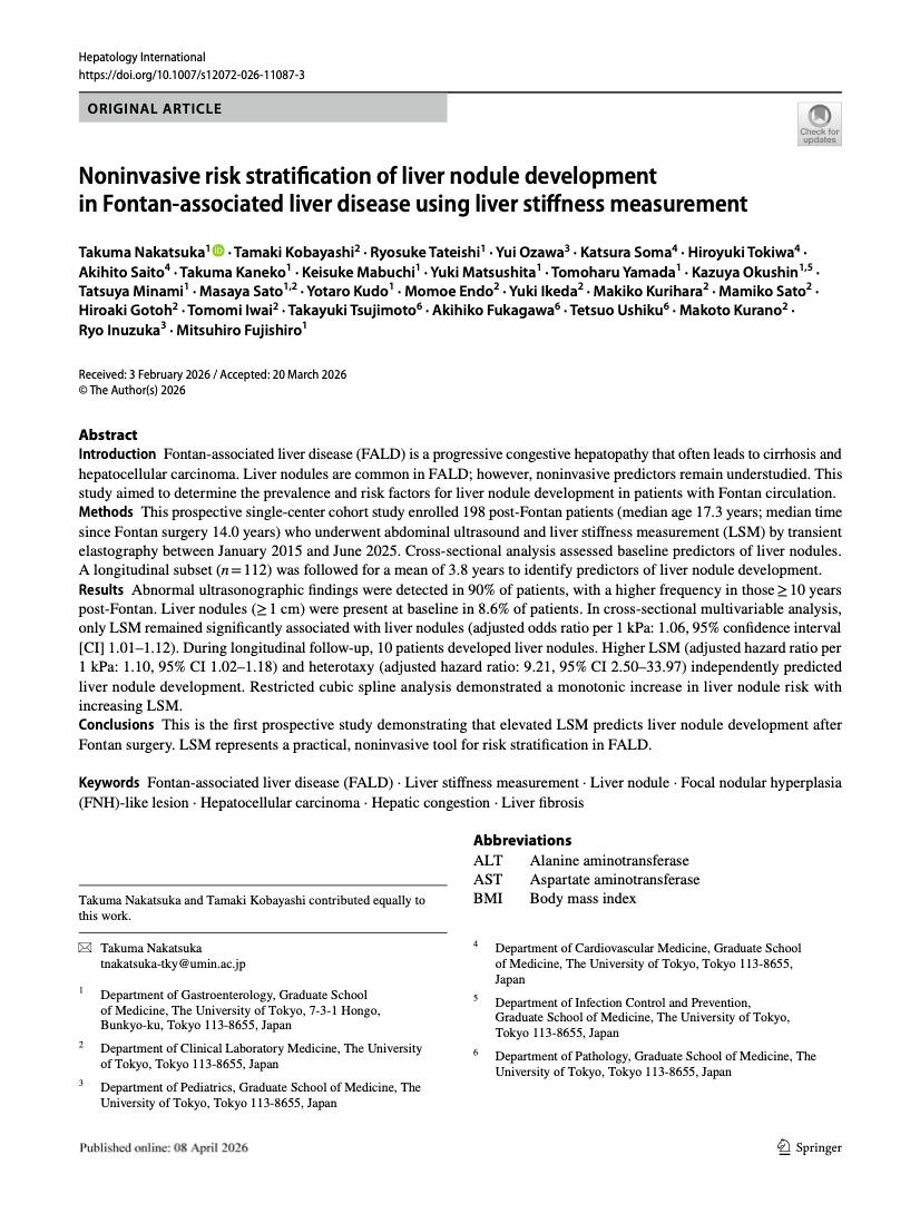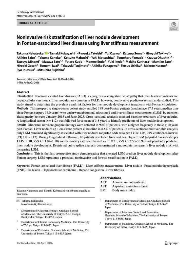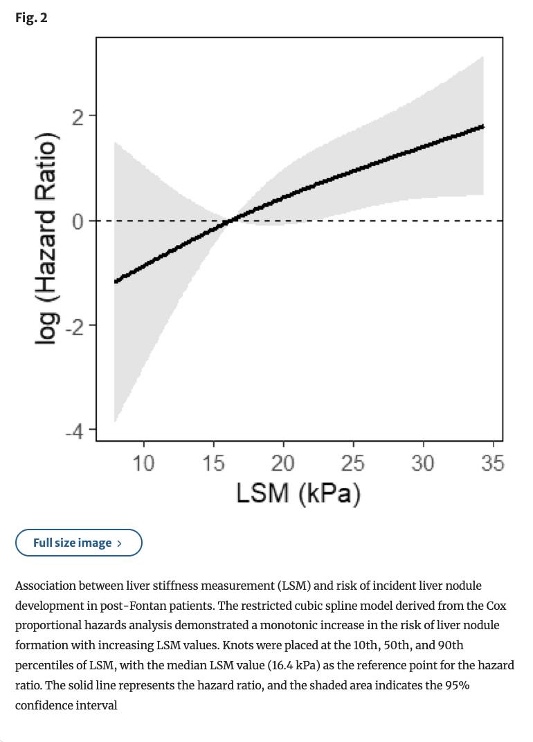 Explore the role of liver stiffness measurement (LSM) in the noninvasive risk stratification of liver nodule development in patients with Fontan-associated liver disease (FALD).
